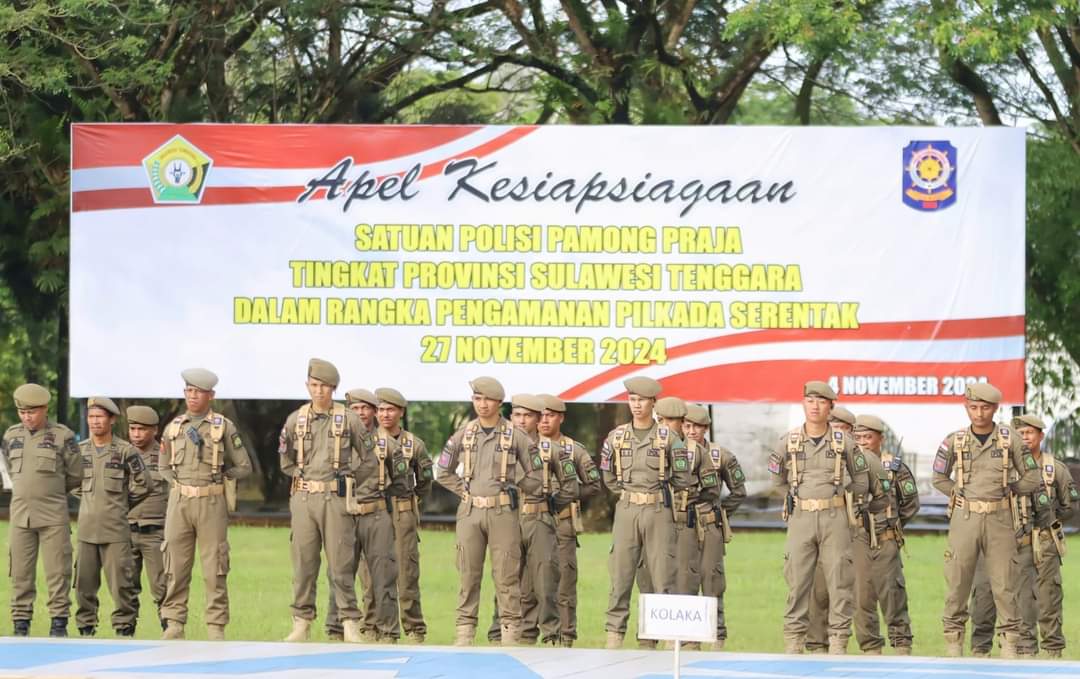 KENDARI, LENSASATU.COM | | (PPID Utama Sultra) 4 November 2024 — Dalam rangka mempersiapkan pelaksanaan Pilkada Serentak 2024, Pemerintah Provinsi Sulawesi Tenggara menggelar Apel Kesiapsiagaan Pasukan Satuan Polisi Pamong Praja (Satpol PP) dan Satuan Perlindungan Masyarakat (Satlinmas). Apel ini dipimpim oleh Penjabat Gubernur Sulawesi Tenggara, Komjen Pol (P) Andap Budhi Revianto, S.I.K, M.H.