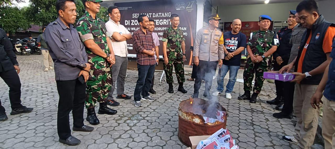 BONE, LENSASATU.COM Sebanyak 476 lembar surat suara rusak pada Pemilihan Serentak 2024 dimusnahkan di halaman kantor KPU Bone, Selasa (26/11/2024).