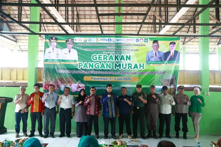 “Terhadap kenaikan harga pangan pokok tersebut, maka Pemerintah Kabupaten Buton melalui Dinas Ketahanan Pangan mengambil salah satu langkah konkrit yakni bekerjasama dengan Bulog dan Dinas Ketahanan Pangan Provinsi Sultra menyelenggarakan Gerakan Pangan Murah yang dipusatkan di Baruga Pasarwajo sebagai upaya stabilisasi pasokan dan harga pangan di masyarakat,” jelas Bupati Alvin.