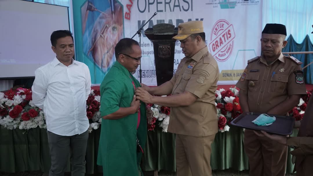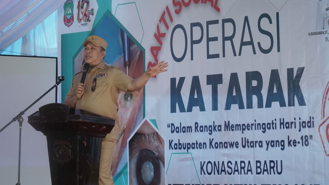 KONAWE UTARA,LENSASATU.COM ||Bupati Konawe Utara, Ruksamin, didampingi Ketua DPRD Konut, Herman Sewani, membuka kegiatan bakti sosial (baksos) operasi katarak gratis yang digelar di BLUD Rumah Sakit Konawe Utara, Senin, 6 Januari 2025
