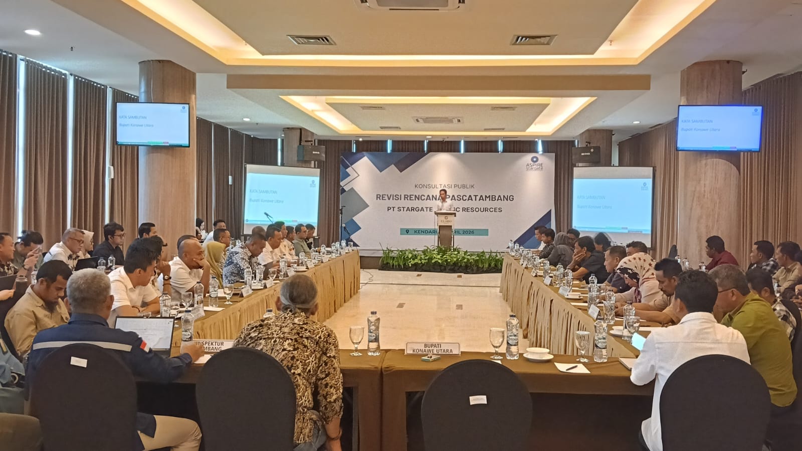 KENDARI – LENSASATU.COM || Bupati Konawe Utara, H. Ikbar, SH., MH., menyambut positif pelaksanaan Konsultasi Publik Revisi Rencana Pascatambang PT Stargate Pasific Resource yang digelar di salah satu hotel di Kota Kendari, Rabu (15/4/2026).