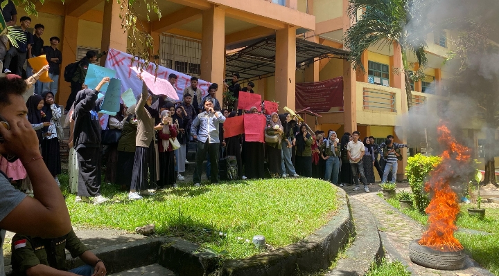 Menilai BPH UM Kendari Yang Terkesan Sepihak Dalam Memutuskan Pemindahan, KBM FEBI UM Kendari Yang Terdiri Dari Lima Lembaga Internal Fakultas Diantaranya BEM, HMPS Manajemen, HMPS Bisdik, KSPM Dan PK IMM FEBI UMK Melakukan Demonstrasi Besar-Besaran Yang Diikuti Oleh Hadirnya Puluhan Mahasiswa Dalam Menolak Keputusan Kampus Akan Pemindahan Gedung Fakultas.