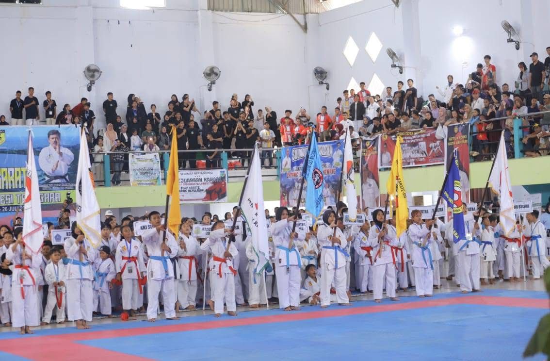Ketgam:Gubernur Sulawesi Tenggara, Mayjen TNI (Purn) Andi Sumangerukka, secara resmi membuka Kejuaraan Karate Piala Gubernur Sulawesi Tenggara Tahun 2025.