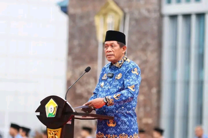 KENDARI-LENSASATU. COM. ||. Wakil Gubernur Sulawesi Tenggara, Ir. Hugua, memimpin peringatan Hari Kesadaran Nasional (HKN) yang berlangsung di halaman Kantor Gubernur Sultra, Selasa (17/6/2025). Upacara ini diikuti oleh Staf Ahli Gubernur, Asisten Sekda, Kepala OPD, pejabat struktural dan fungsional, serta ASN dari berbagai instansi lingkup Pemerintah Provinsi Sulawesi Tenggara.