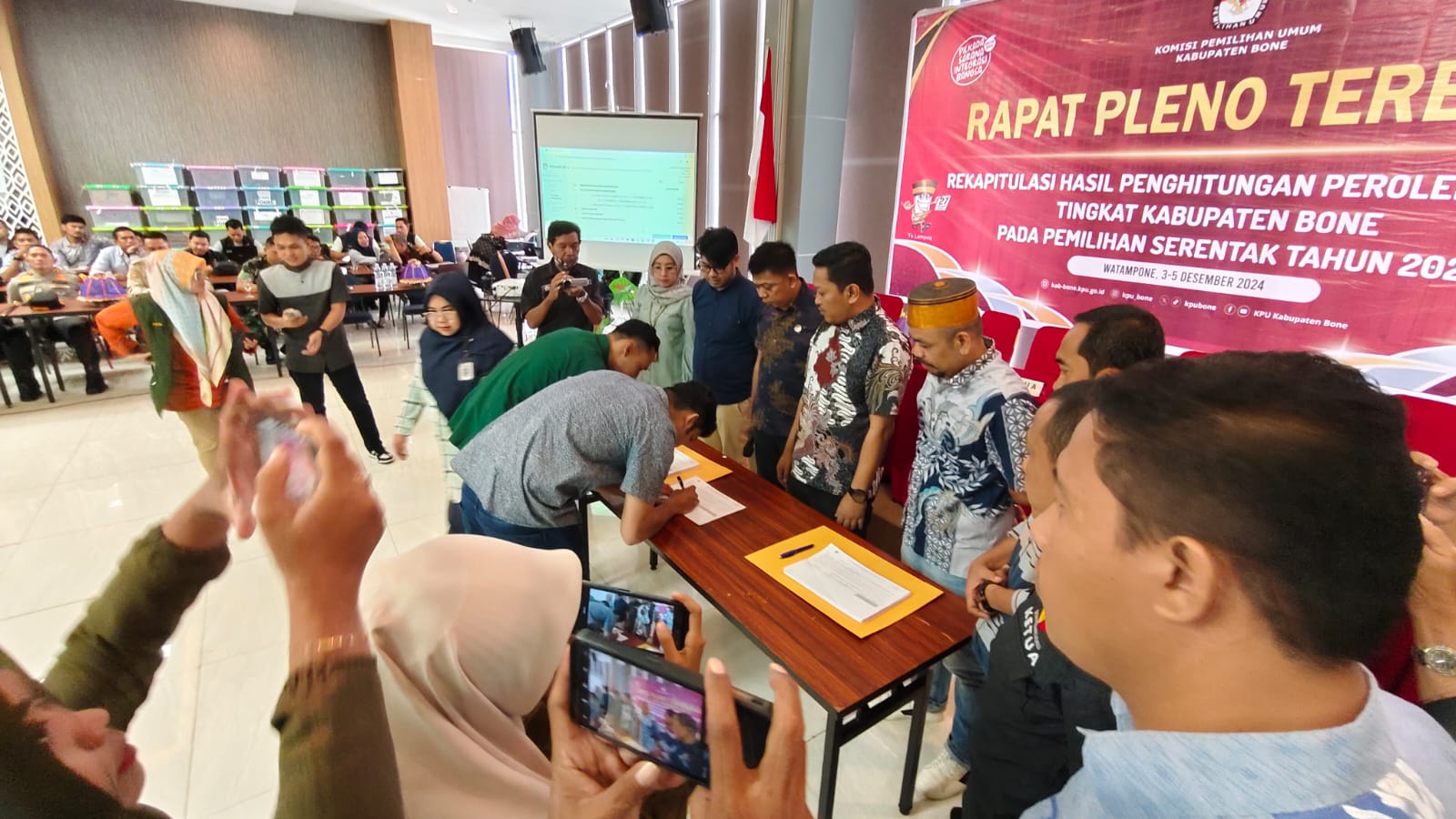 KPU Kabupaten Bone Menetapkan Hasil Pemilihan Bupati dan Wakil Bupati Kabupaten Bone Tahun 2024 berdasarkan hasil rapat pleno rekapitulasi penghitungan perolehan suara yang tertuang dalam formulir MODEL D.HASIL KABKO-KWK-BUPATI/WALIKOTA