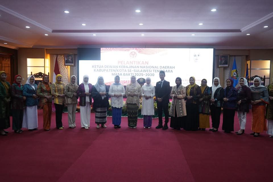 Pelantikan ini dilakukan oleh Ketua Dekranasda Provinsi Sulawesi Tenggara, Ny. Arinta Nila Haspari, bersama ketua Dekranasda kabupaten/kota se-Sultra di Aula Merah Putih Rumah Jabatan Gubernur Sultra, Rabu (12/3/2025).