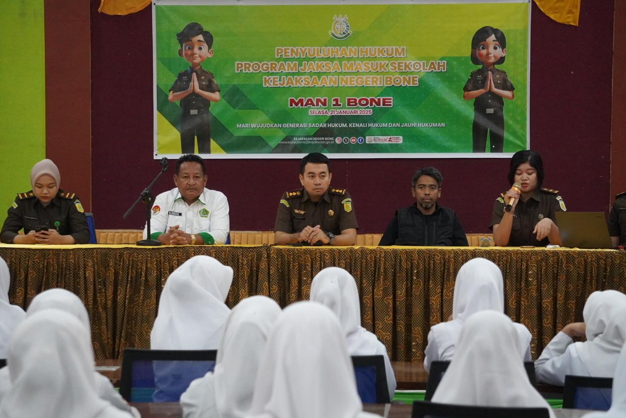 BONE, LENSASATU.COM Kejaksaan Negeri Bone menggelar program Jaksa Masuk Sekolah di Sekolah Madrasah Aliyah Negeri I Bone, Selasa (21/01/2024).