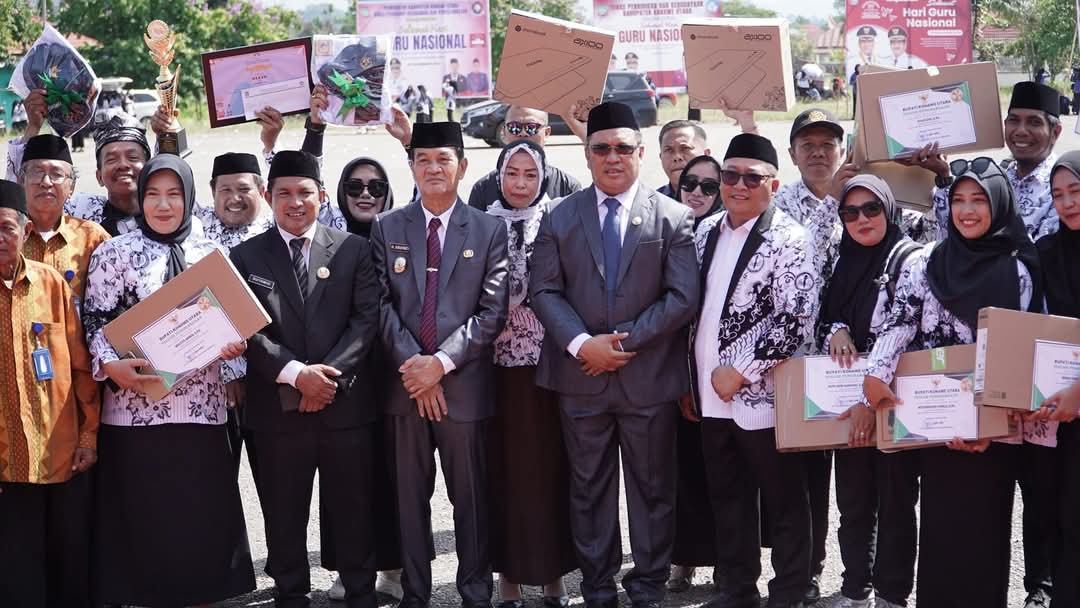 Dalam sambutan yang disampaikan, Bupati H. Ruksamin membacakan amanat Menteri Pendidikan Dasar dan Menengah RI, Abdul Mu’ti, ia mengucapkan selamat Hari Guru Nasional 25 November 2024 kepada seluruh guru di Indonesia, baik yang bertugas di kota maupun di pelosok dengan fasilitas terbatas.