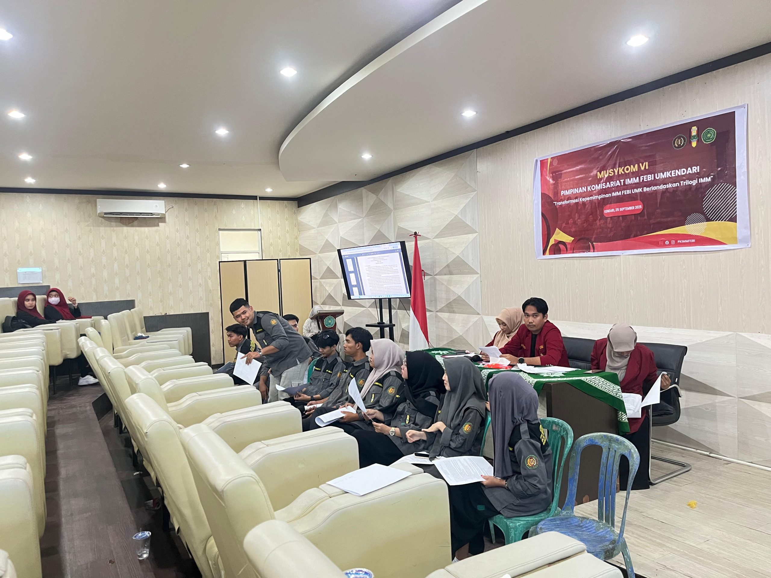 KENDARI – LENSASATU.COM.|| Pimpinan Komisariat (PK) Ikatan Mahasiswa Muhammadiyah (IMM) Fakultas Ekonomi dan Bisnis Islam (FEBI) Universitas Muhammadiyah Kendari (UMK) resmi menggelar Musyawarah Komisariat (Musykom) untuk menyambut kepemimpinan baru periode 2025–2026. Kegiatan ini berlangsung pada Kamis (25/9/2025) di Ruang Teleconference Lantai 3 Gedung E UM Kendari.