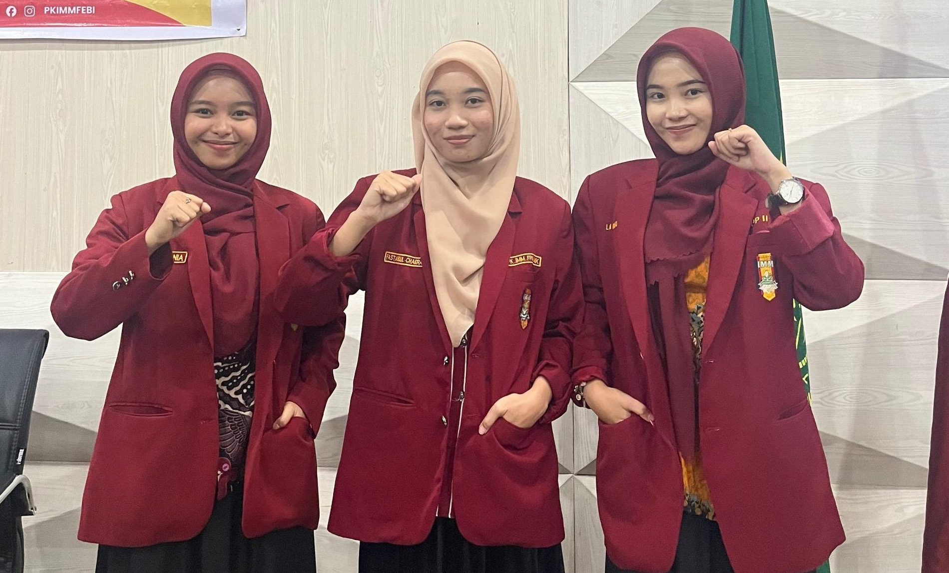 Ketgam: Formatur Terpilih PK IMM FEBI UMK Periode 2025-2026 — Bagian Kiri Immawati Novita Sari (Sekum), Tengah Immawati Nela Aswari (Ketum), Kanan Immawati Lisca Dwi Dian Nafisah (Bendum)