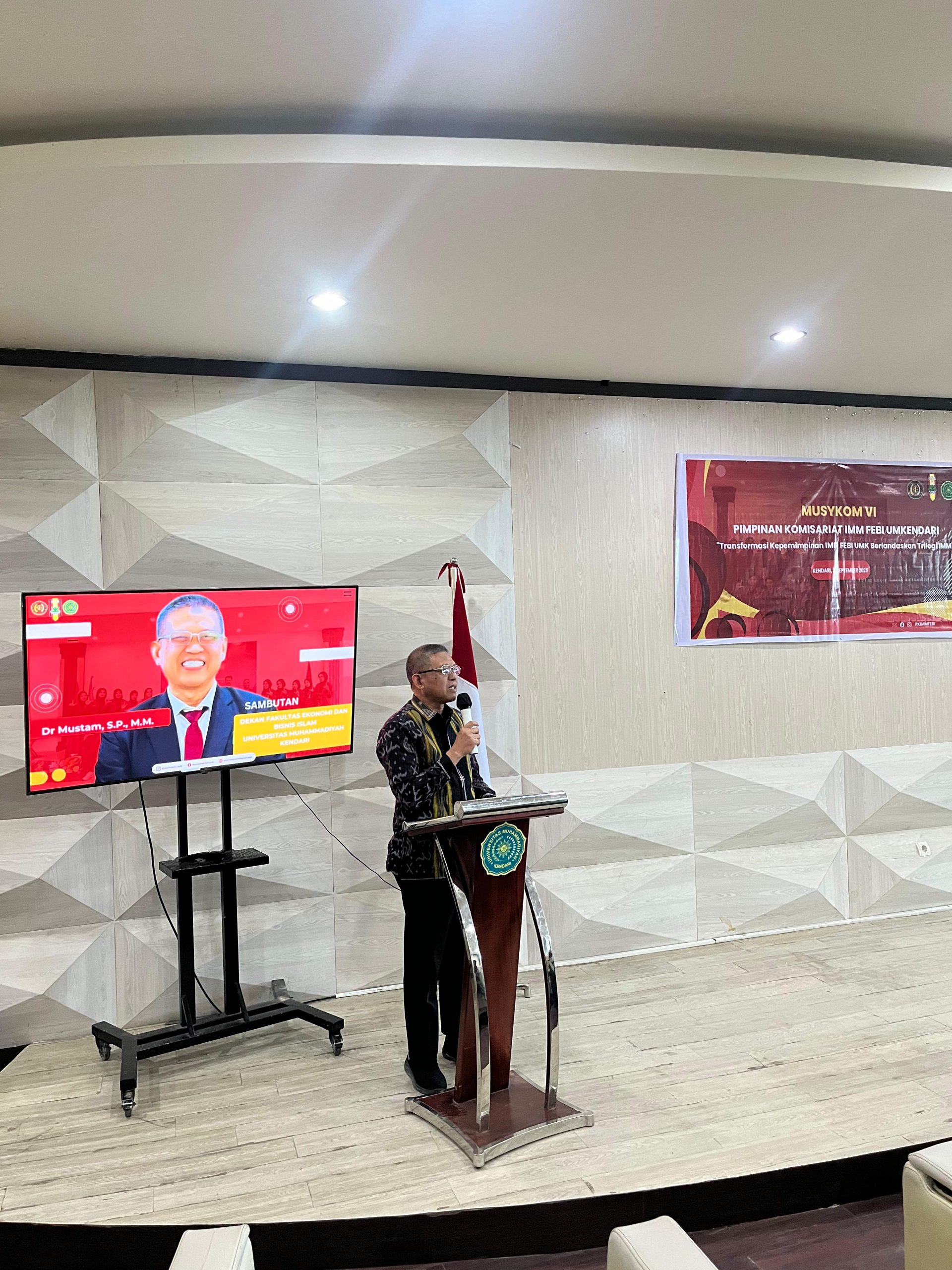 Acara resmi dibuka dengan sambutan Dr. Mustam, S.P., M.M. Dalam kesempatan itu, ia menegaskan bahwa FEBI UMK telah menjadi salah satu fakultas yang mendominasi lembaga mahasiswa baik di tingkat kampus maupun luar kampus. Ia mencontohkan, jabatan Ketua Cabang IMM Kota Kendari, Ketua Korkom IMM, hingga Ketua BEM Universitas saat ini diisi oleh kader-kader terbaik dari FEBI UMK.