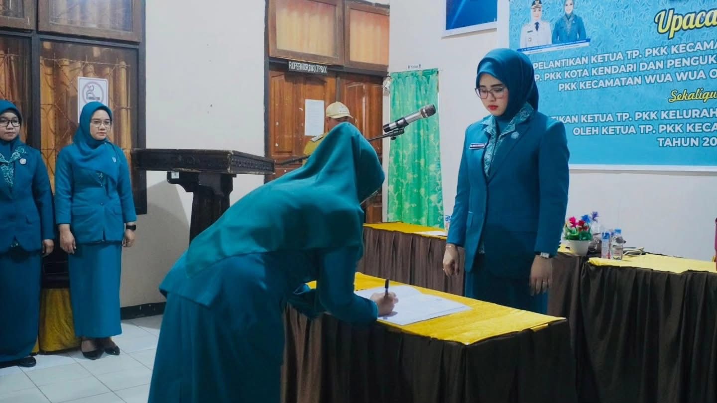 Kendari – LENSASATU.COM || Ketua Tim Penggerak (TP) PKK Kota Kendari melantik Ketua TP PKK Kecamatan Wua-wua. Kegiatan ini dirangkaikan dengan pelantikan Ketua TP PKK kelurahan se Kecamatan Wua-wua. Acara dilaksanakan di Aula Kantor Camat Wua-wua, Senin (6/10/2025).
