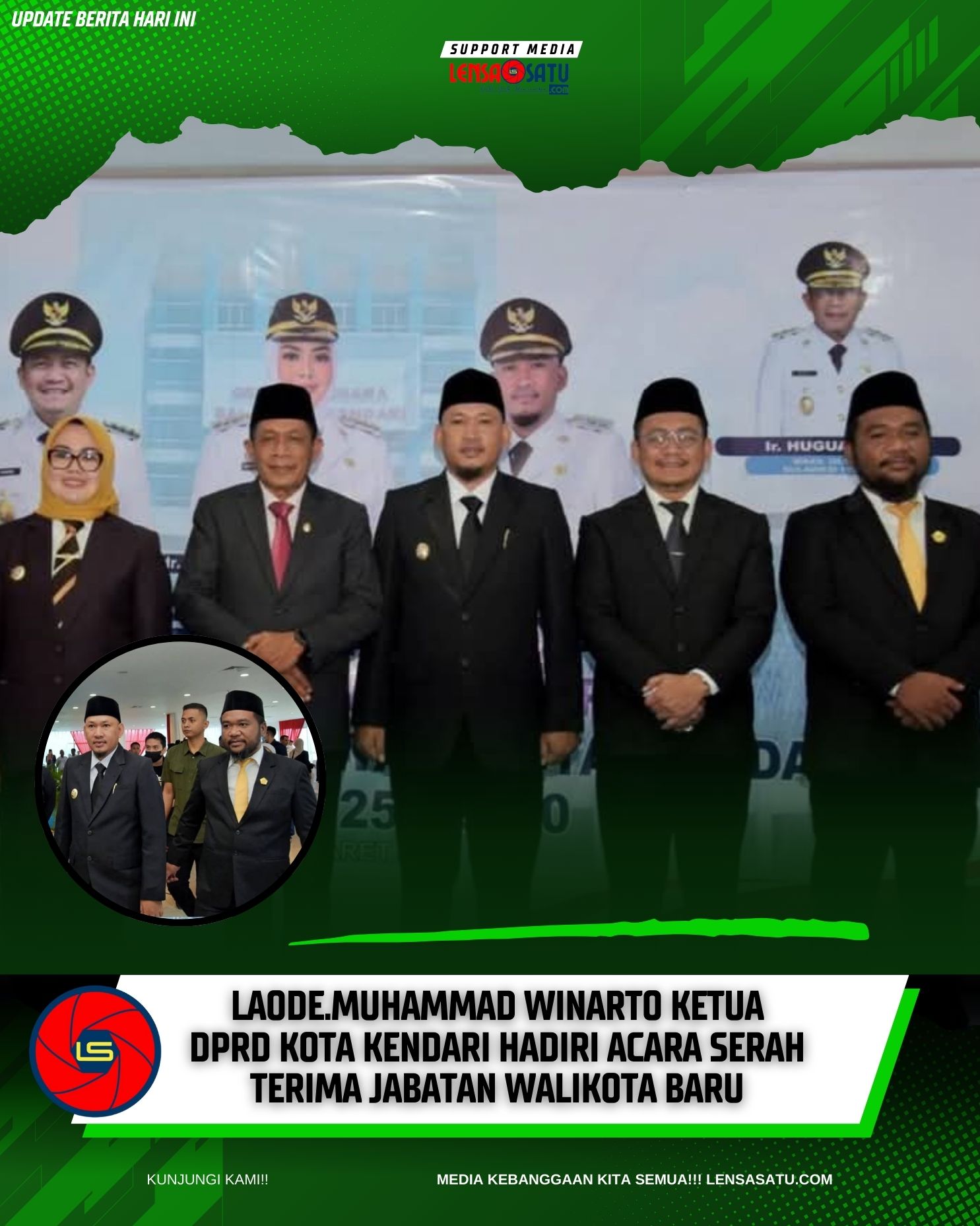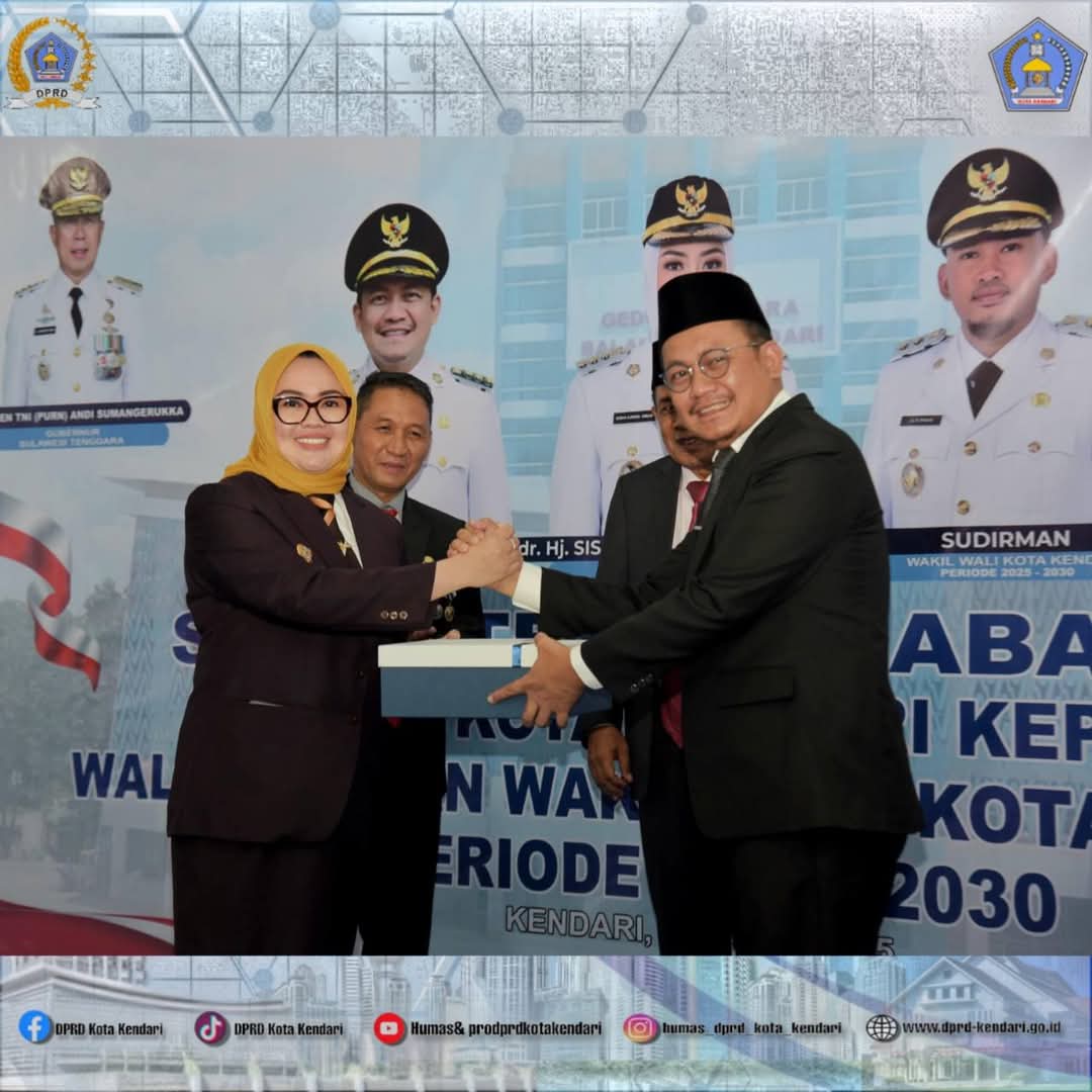 KENDARI-LENSASATU.COM||Ketua DPRD kota Kendari Laode Muhammad Inarto menghadiri acara serah terima jabatan walikota Kendari dari Pj Wali Kota Kendari, Parinringi, kepada Wali Kota dan Wakil Wali Kota Kendari, Siska Karina Imran dan Sudirman. Acara berlangsung di Aula Teporombua Lantai 10 Balai Kota Kendari. Rabu, (05/03/2025).