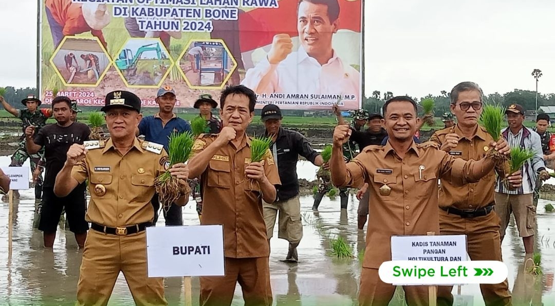 Tanam perdana ini merupakan langkah awal dalam memaksimalkan potensi lahan rawa yang ada di Kabupaten Bone, sebagai bagian dari upaya meningkatkan produksi padi secara berkelanjutan. Hal ini diungkapkan A Asman Kadis TPHP Bone