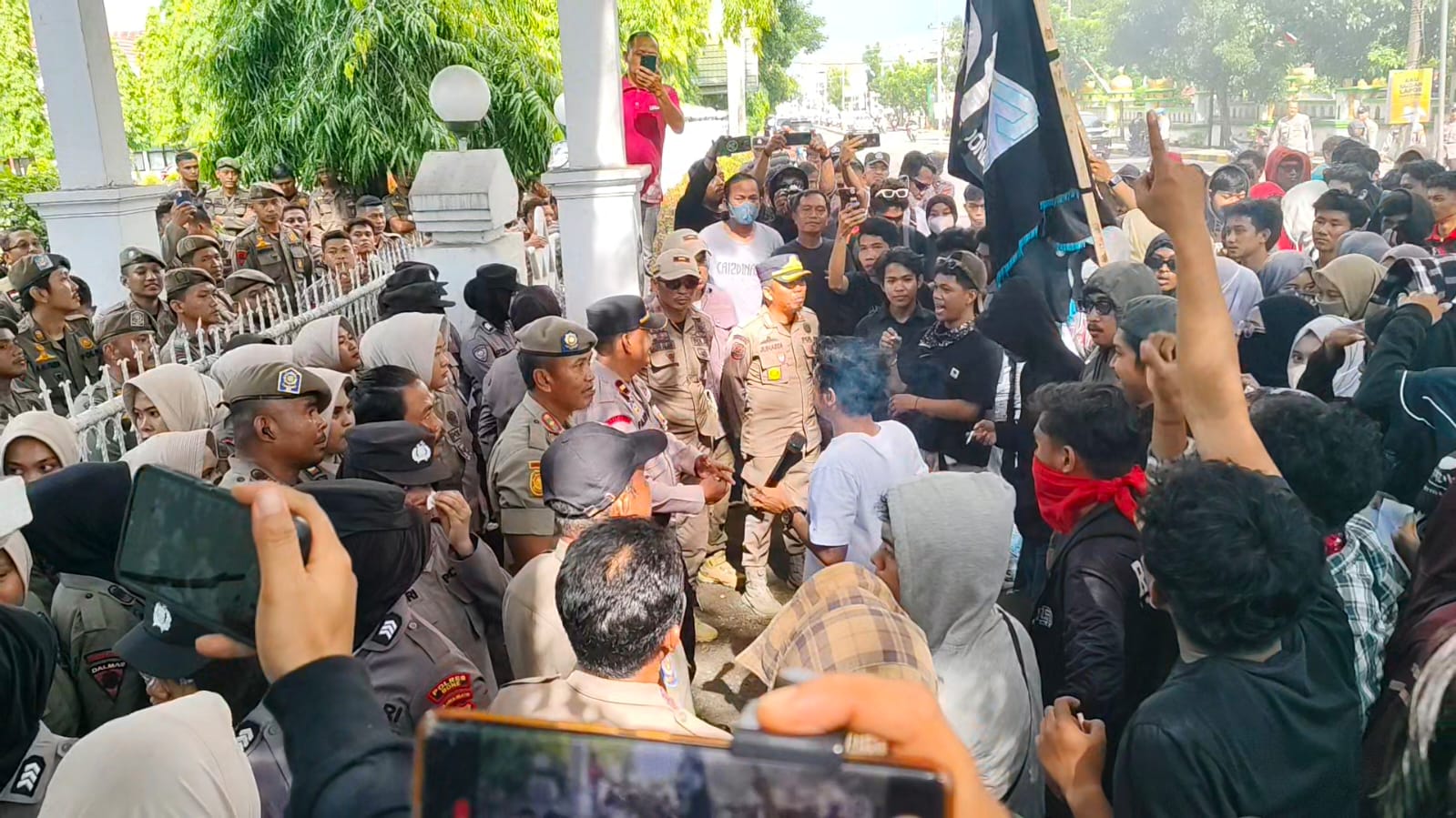 Dekonsentrasi dan pihak pengamanan nyari bentrok karena para pengunjuk rasa mecoba masuk kedalam halaman Kantor namun di halau oleh pihak pengamanan.