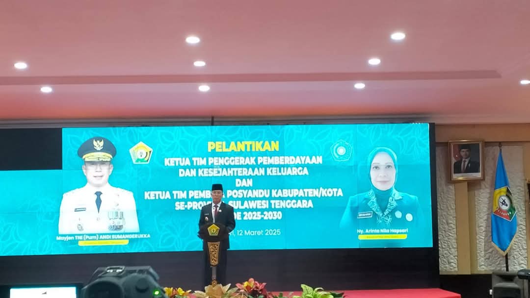 Ketua Tim Penggerak PKK Provinsi Sulawesi Tenggara, Arinta Nila Hapsari, secara resmi melantik 16 Ketua Tim Penggerak Pemberdayaan dan Kesejahteraan Keluarga (PKK) dan Ketua Tim Pembina Posyandu Kabupaten/Kota se-Provinsi Sulawesi Tenggara (Sultra) periode 2025-2030.
