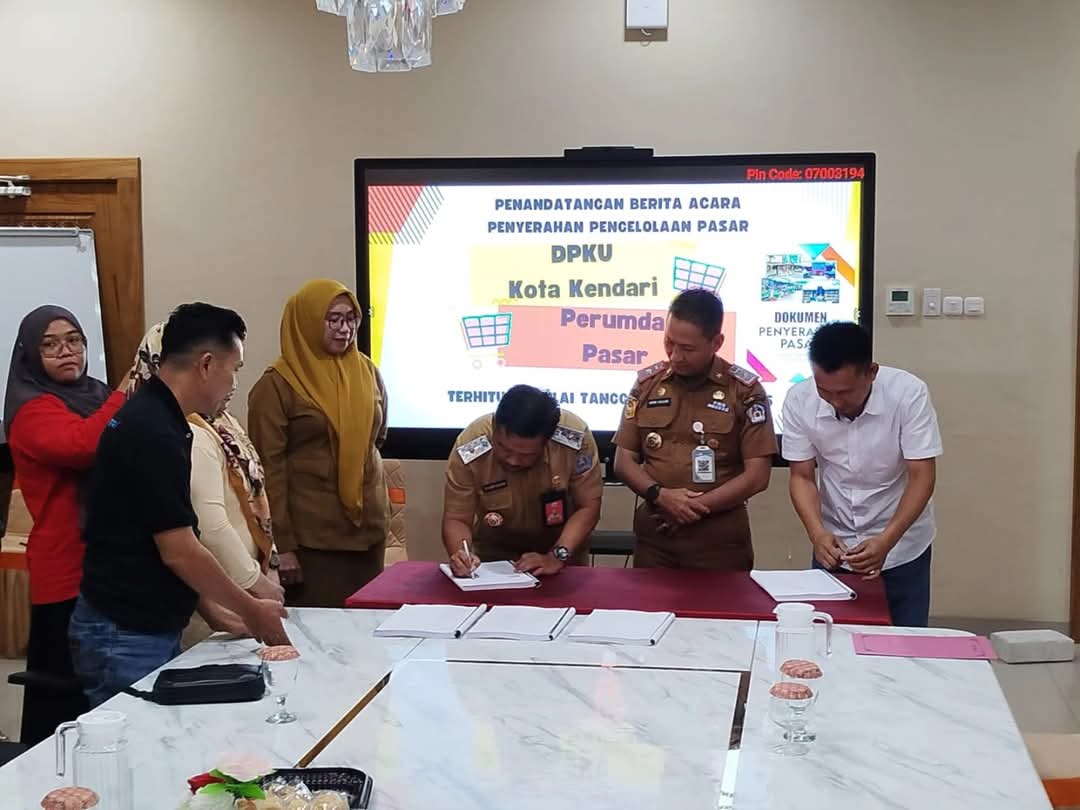 Kendari – LENSASATU.COM || Pemerintah Kota Kendari resmi menyerahkan pengelolaan pasar dari Dinas Perdagangan, Koperasi dan UKM kepada Perusahaan Umum Daerah (Perumda) Pasar Kota Kendari. Penandatanganan Berita Acara Penyerahan Pengelolaan Pasar tersebut berlangsung di ruang rapat Sekretaris Daerah Kota Kendari, Selasa (30/12/2025), sebagai tindak lanjut atas Keputusan Wali Kota Kendari yang mulai berlaku efektif 1 Januari 2026.