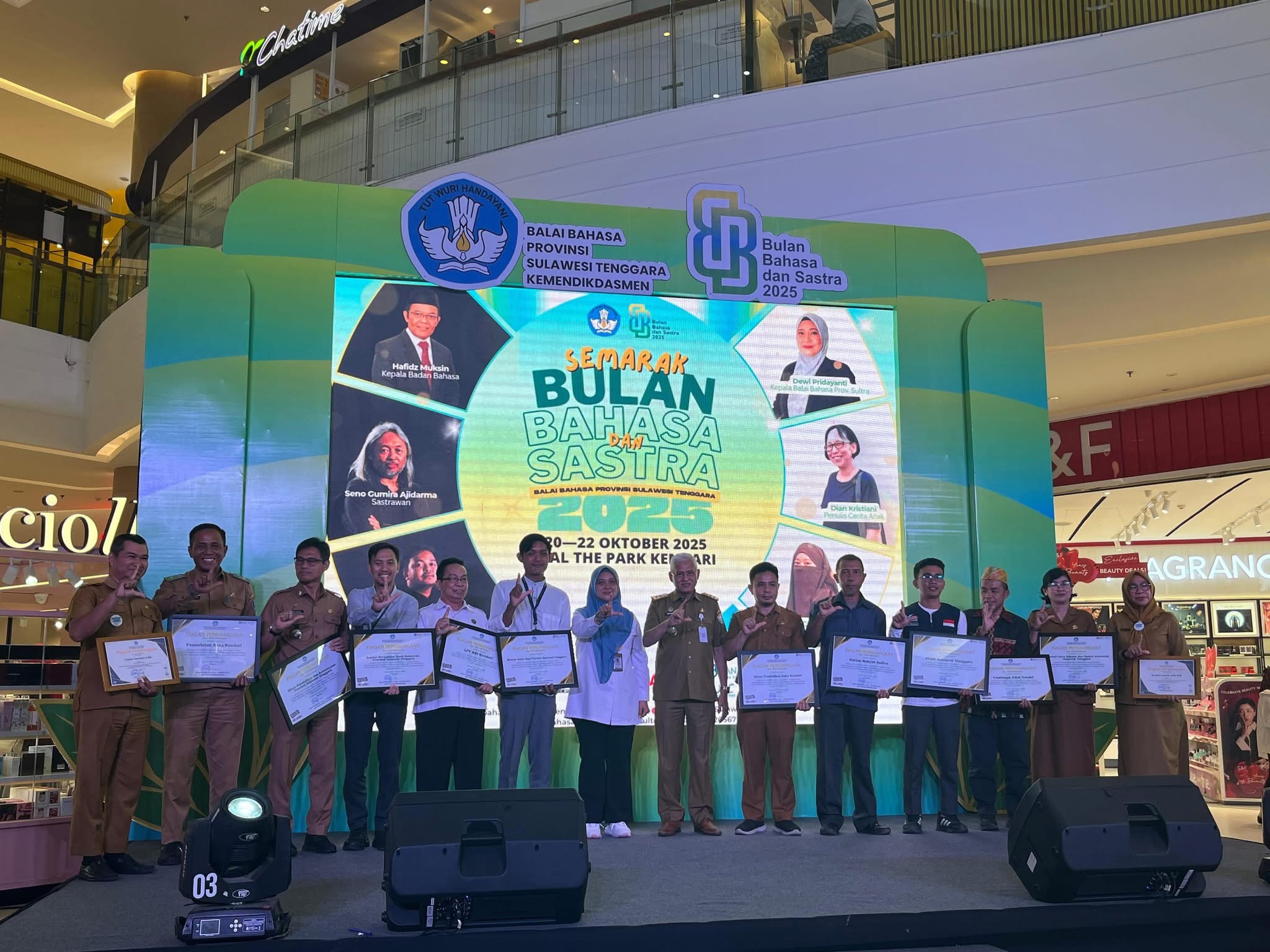 Kendari-LENSASATU.COM || Sekretaris Daerah Provinsi Sulawesi Tenggara, Drs. Asrun Lio, M.Hum., Ph.D., secara resmi membuka kegiatan Peringatan Bulan Bahasa dan Sastra Tahun 2025 yang diselenggarakan oleh Balai Bahasa Provinsi Sulawesi Tenggara di Kendari pada Senin, 20 Oktober 2025 di Kendari.