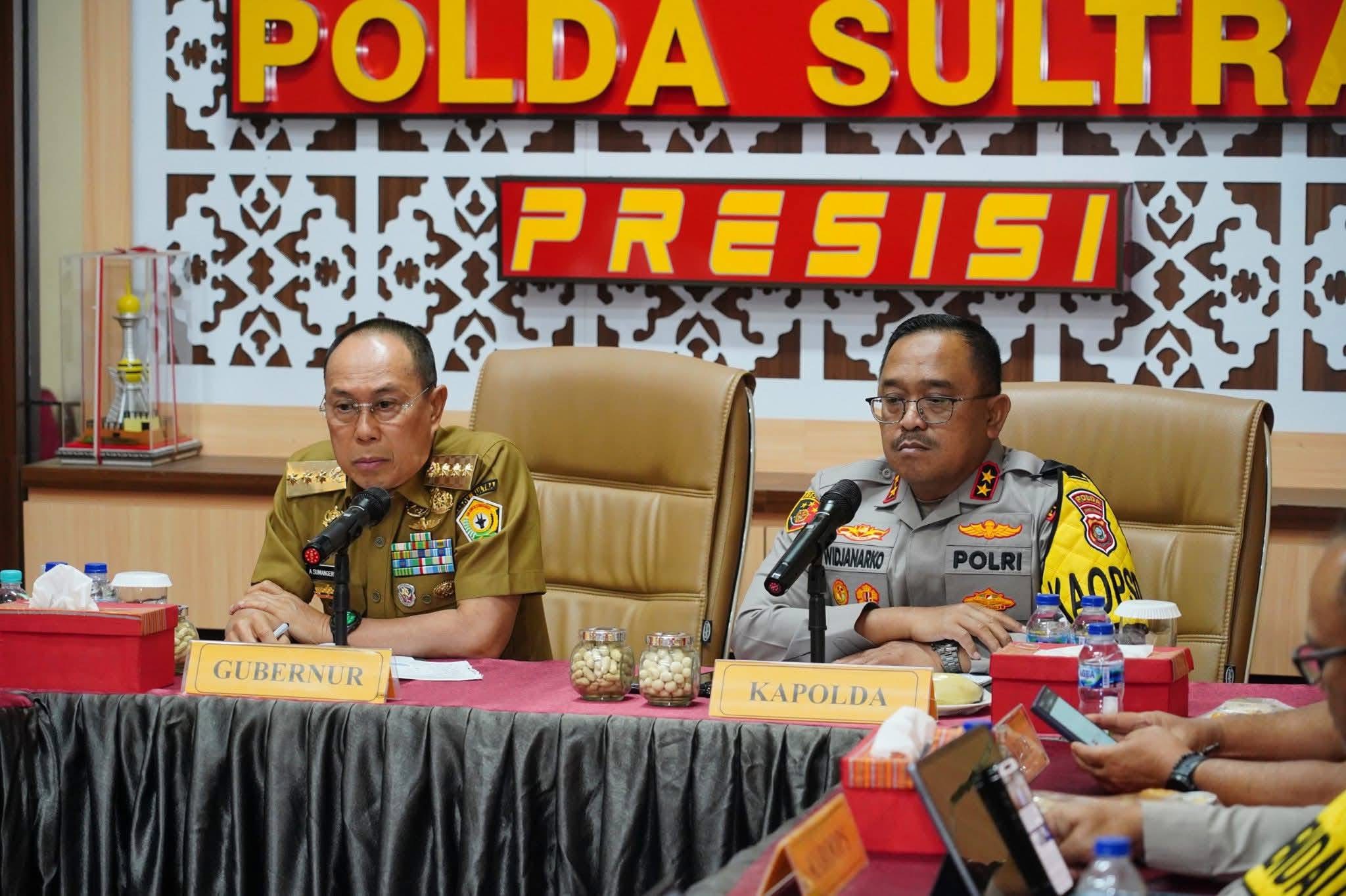 Gubernur Andi Sumangerukka mengikuti rapat koordinasi bersama unsur Forum Koordinasi Pimpinan Daerah (Forkopimda) Provinsi Sultra didampingi Kepala Dinas Perhubungan Provinsi Sultra dan Kepala Pelaksana Badan Penanggulangan Bencana Daerah (BPBD) Sultra.
