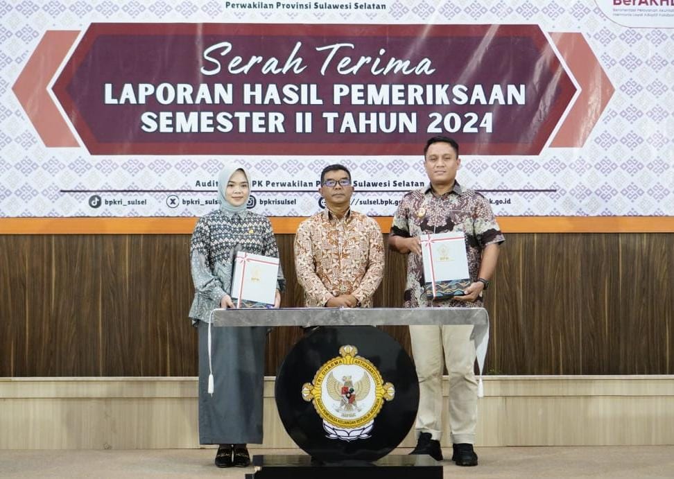 Laporan hasil pemeriksaan diserahkan oleh Kepala BPK Perwakilan Prov. Sul-Sel, Dr. Amin Adab Bangun Di Auditorium Kantor BPK Perwakilan Prov. Sul-Sel, Jl. AP. Petta Rani, Kota Makassar, Rabu 8/1/2025.