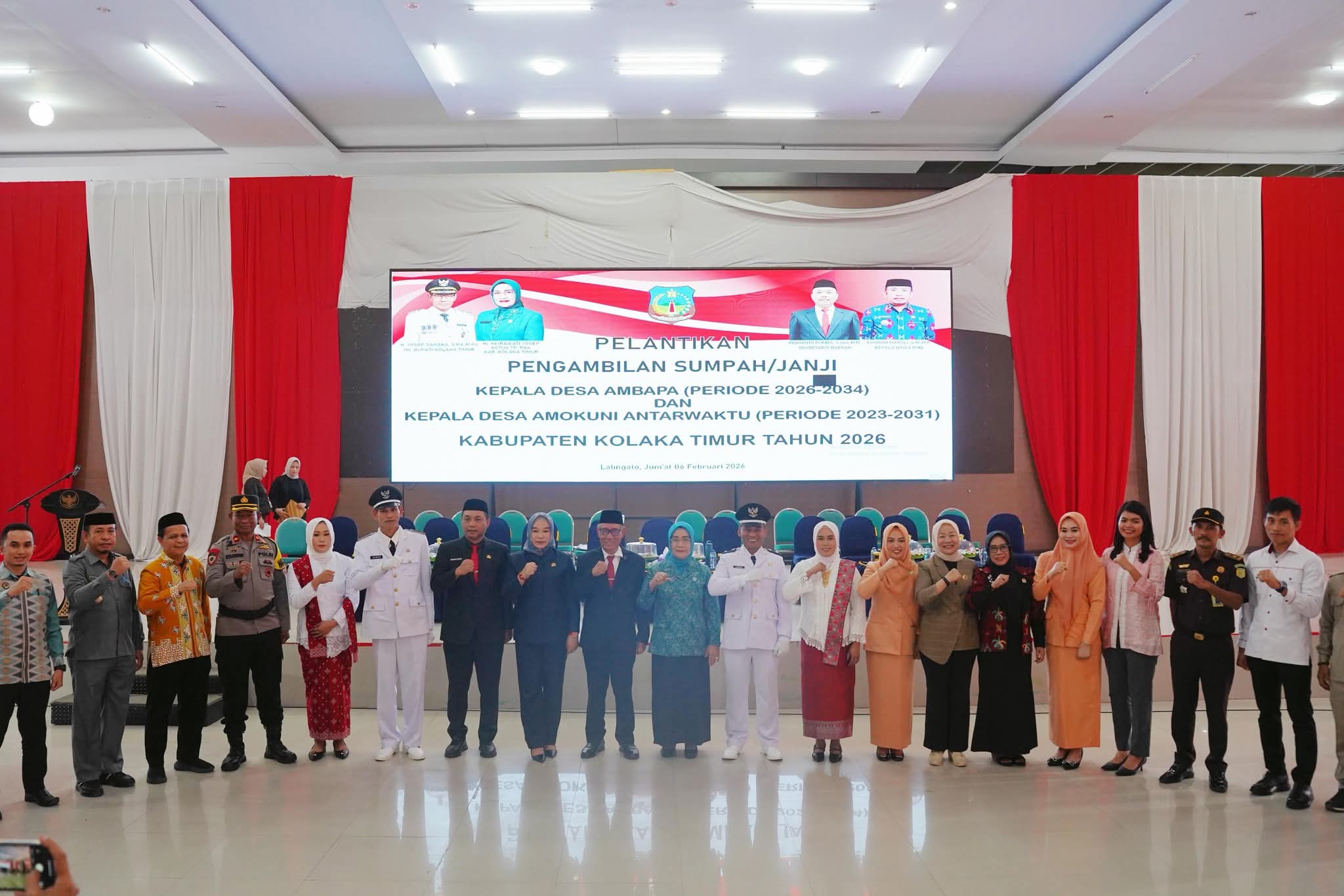 Kolaka Timur – LENSASATU.COM || Pelaksana Tugas (Plt) Bupati Kolaka Timur (Koltim), H. Yosep Sahaka, S.Pd., M.Pd., secara resmi melantik Jusman sebagai Kepala Desa Ambapa dan Jaiman sebagai Kepala Desa Pengganti Antar Waktu (PAW) Desa Amokuni. Pelantikan berlangsung di Aula Pemerintah Daerah Kolaka Timur, Desa Lalingato, Kecamatan Tirawuta, pada Jumat (6/2/2026).