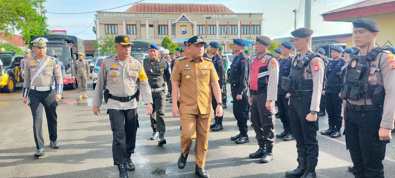 BONE, LENSASATU.COM ||Polres Bone menggelar Apel Gelar Pasukan Operasi Kepolisian terpusat dengan sandi Keselamatan Pallawa 2025 yang dilaksanakan di lapangan apel Mapolres Bone, Senin pagi (10/2/2025).