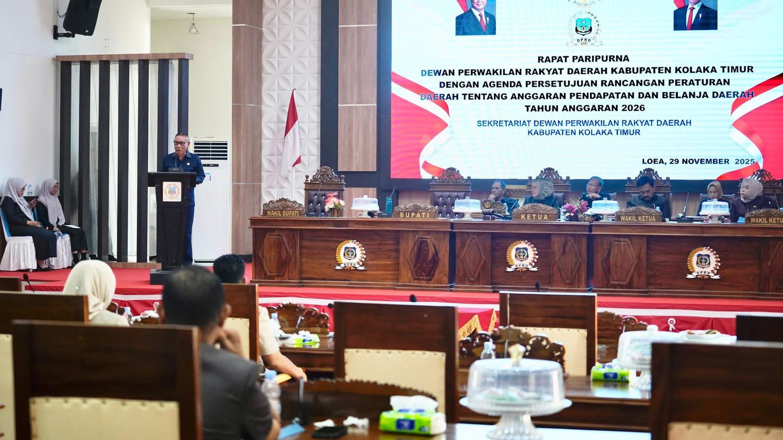 Dalam paripurna ini, DPRD bersama Pemerintah Kabupaten Kolaka Timur membahas dan menyepakati struktur anggaran yang akan menjadi dasar pelaksanaan program pembangunan dan layanan publik pada tahun 2026.