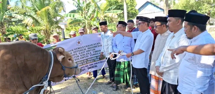Bantuan ini diberikan dalam rangka Hari Raya Idul Adha 1446 Hijriah atau 2025 Masehi. Penyerahan sapi kurban tersebut dilakukan secara simbolis oleh Wakil Bupati Koltim H Yosep Sahaka S. Pd., M. Pd, di halaman Masjid Al-Ikhlas Kelurahan Penanggo Jaya, Kecamatan Lambandia, pada Jum’at (6/6/2025).