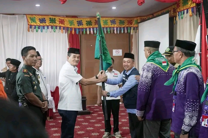 KONUT-LENSASATU. COM. ||. Sebanyak 37 calon jamaah haji asal Konawe Utara resmi dilepas oleh Wakil Bupati Abuhaera, Rabu (21/5), di Aula Anawai Ngguluri.