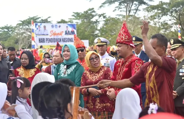 KENDARI-LENSASATU.COM.|| Peringatan Hari Pendidikan Nasional (Hardiknas) 2025 di Kota Kendari diwarnai nuansa kebhinekaan dan komitmen kuat terhadap pemerataan pendidikan. Para peserta upacara yang terdiri dari guru, kepala sekolah, dan pejabat Pemkot Kendari mengenakan pakaian adat sesuai suku masing-masing, menciptakan mozaik indah keragaman budaya Indonesia.