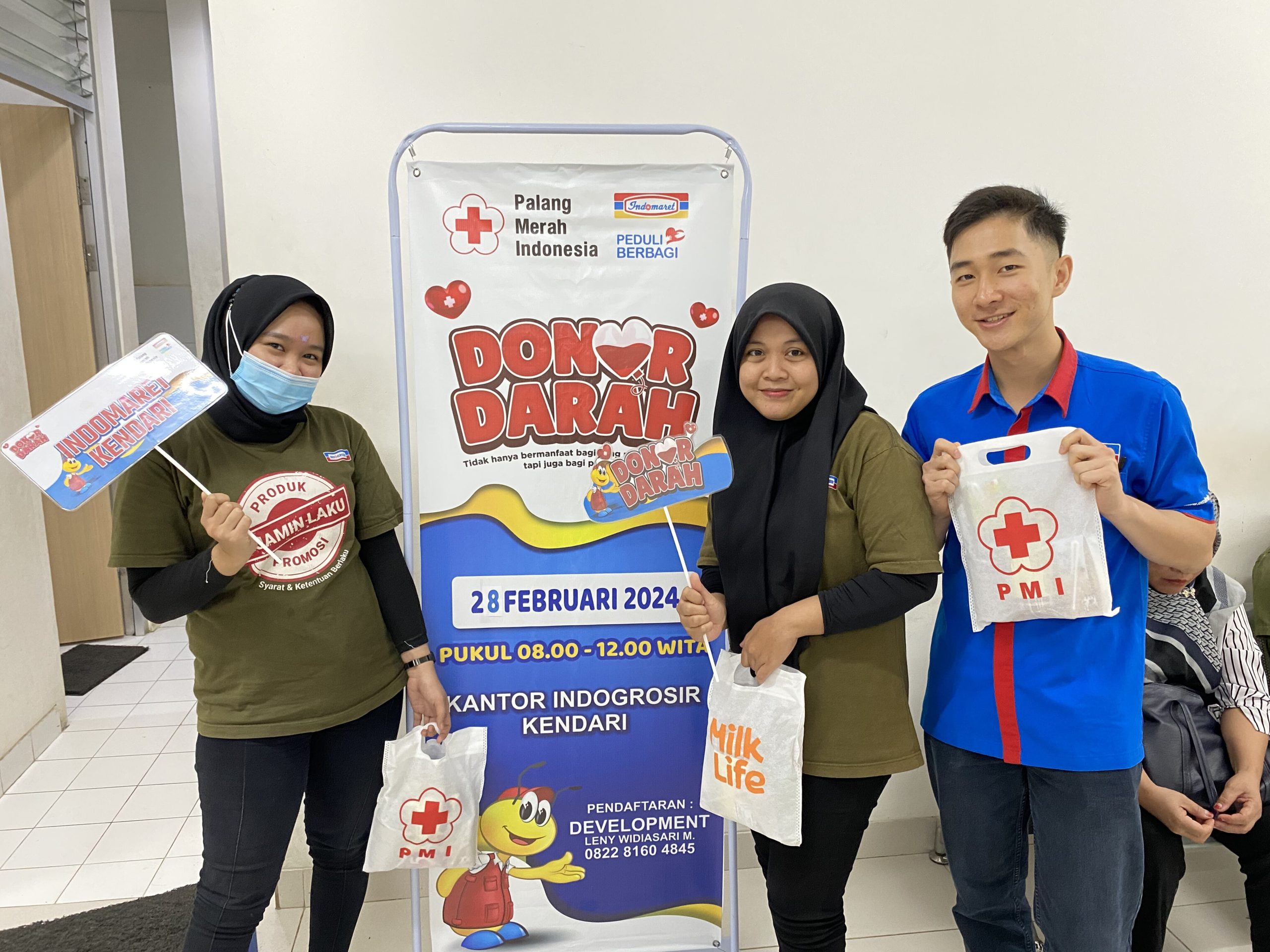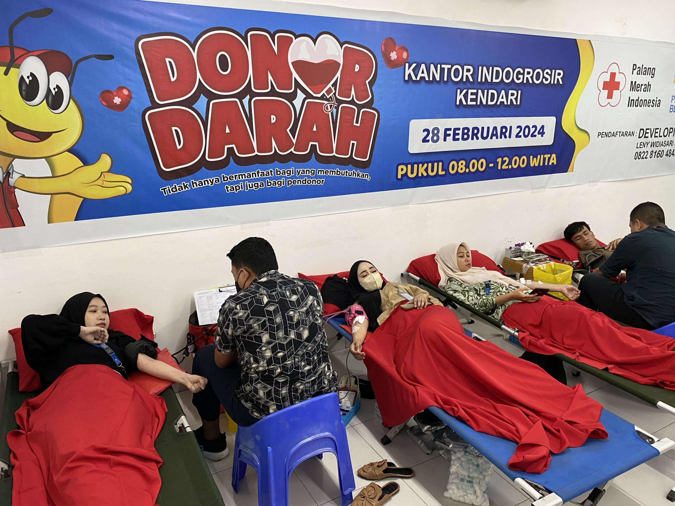 KENDARI -LENSASATU.COM||PT. Indomarco Prismatama (Indomaret) Cabang Makassar (Kendari), melaksanakan CSR donor darah rutin. Kegiatan yang dilakukan setiap tiga bulan sekali bekerjasama dengan PMI Provinsi Sulawesi Tenggara bertempat di Ruang Meeting, kantor Indogrosir, Lantai 2, Rabu (28/2/2024).
