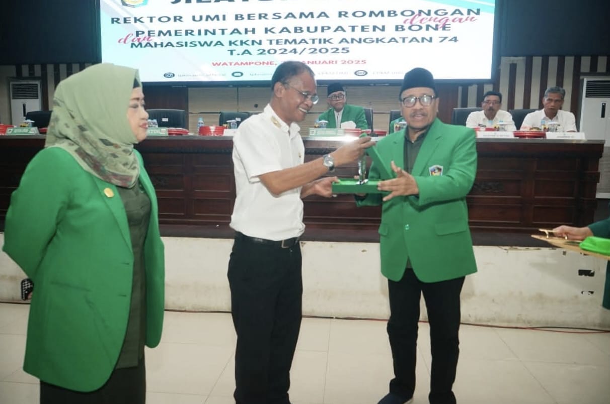 BONE, LENSASATU.COM Penjabat (Pj) Sekretaris Daerah (Sekda) Bone Drs. H A Fajaruddin, M.M., menerima kunjungan jajaran Universitas Muslim Indonesia (UMI) dalam acara silaturahim yang dipimpin langsung oleh Rektor Prof. Dr. H. Hambali Thalib, S.H.,M.H., di Gedung PKK Bone. Rabu (22/01/2025)