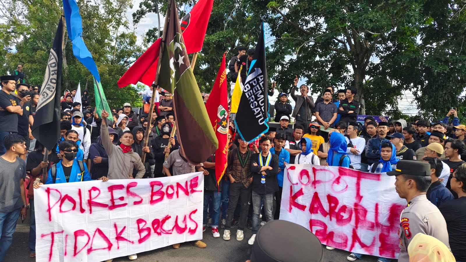 Massa Aksi meminta agar Kapolres Bone dan Kasat Narkoba di copot kemudian Kanit Narkoba di evaluasi karena dianggap gagal memimpin Polres Bone.