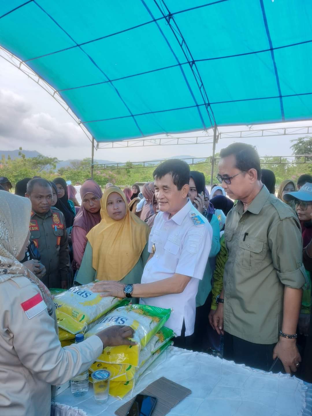 Demi lancar dan tertibnya pelaksanaan gerakan pangan murah, saya meminta kepada pihak keamanan untuk menjaga dan mengontrol jangan sampai ada yang memborong barang sehingga masyarakat lain yang membutuhkan tidak kebagian, tegas Wabup.