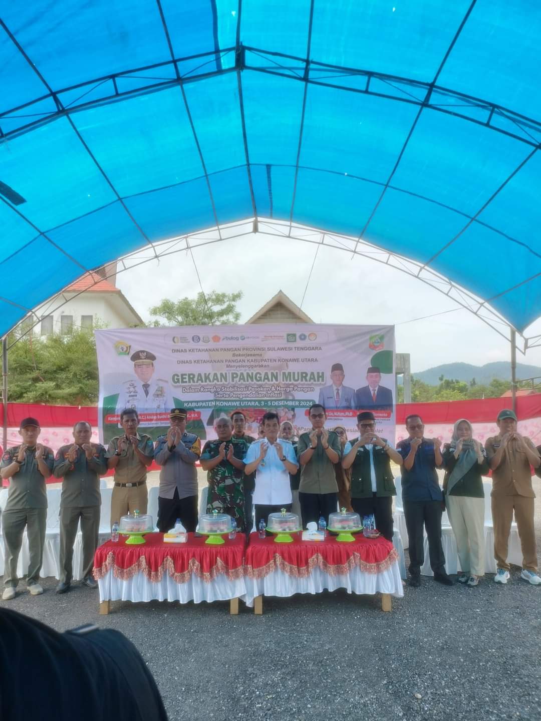 KONUT, LENSASATU.COM ||Untuk menekan laju inflasi di daerah, Pemerintah Provinsi Sulawesi Tenggara kembali bekerja sama dengan Pemerintah Kabupaten Konawe Utara mengadakan kegiatan Gerakan Pangan Murah. Kali ini bertempat di Halaman Kantor Bupati Konawe Utara. Selasa, 3 Desember 2024.