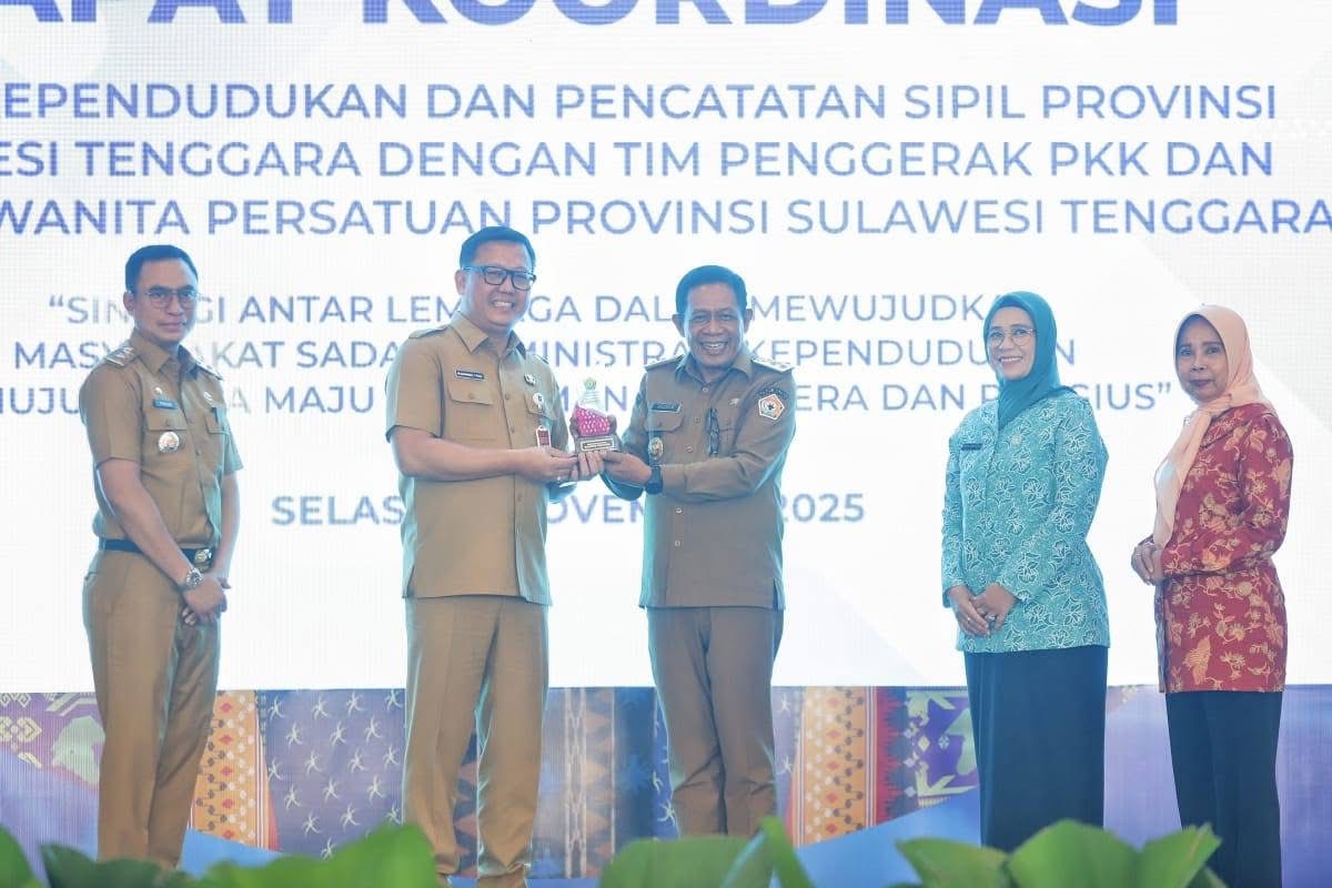 Ketua TP-PKK Provinsi Sulawesi Tenggara, Ibu Arinta Andi Sumangerukka, menegaskan bahwa Tim Penggerak PKK memiliki peran strategis dalam menumbuhkan kesadaran masyarakat terhadap pentingnya kepemilikan dokumen kependudukan.