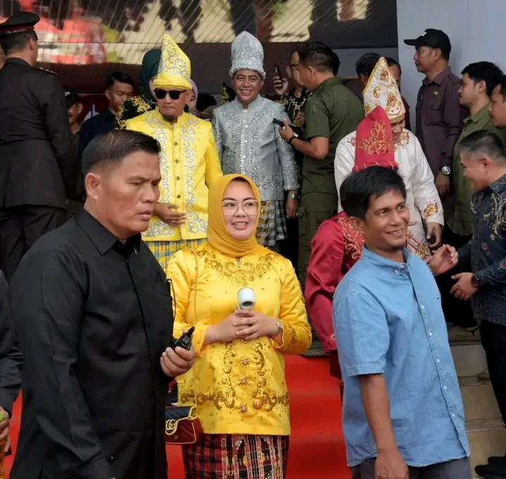 KENDARI-LENSASATU.COM.|| Wali Kota Kendari, Siska Karina Imran bersama Wakil Wali Kota Kendari, Sudirman menghadiri upacara peringatan Hari Ulang Tahun (HUT) ke-61 Provinsi Sulawesi Tenggara yang dilaksanakan di Alun-Alun 19 September Kolaka, Minggu (27/4/2025).