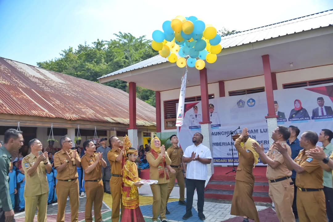 KENDARI, LENSASATU.COM|| Wali Kota Kendari melaunching Senam Lulo Bugar dan Pemberian Makan Bergizi Gratis (MBG) di Sekolah Dasar Negeri 26 Kendari, Selasa (22/4/2025).