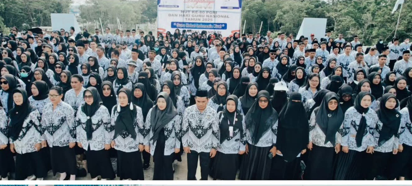 Kendari – LENSASATU.COM || Pemerintah Kota Kendari memperingati Hari Ulang Tahun (HUT) ke-80 Persatuan Guru Republik Indonesia (PGRI) yang dirangkaikan dengan Hari Guru Nasional (HGN) Tahun 2025 di Lapangan Balai Kota Kendari, Selasa (25/11/2025).