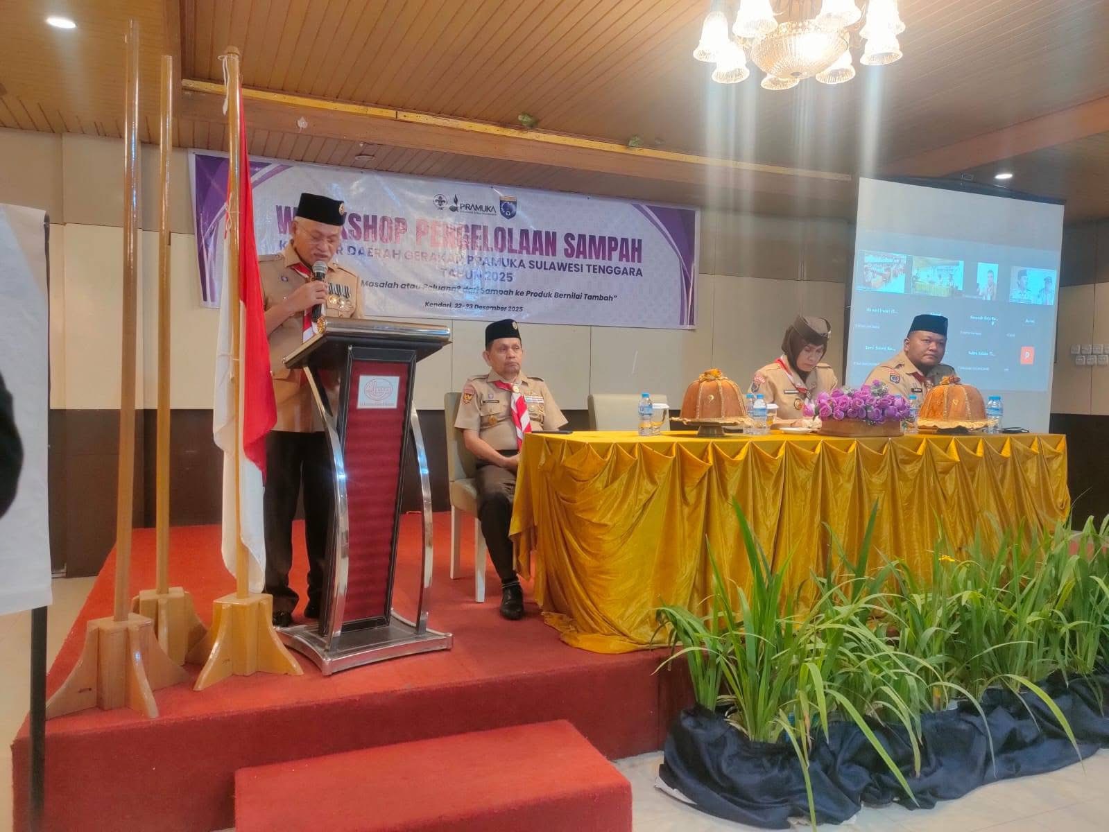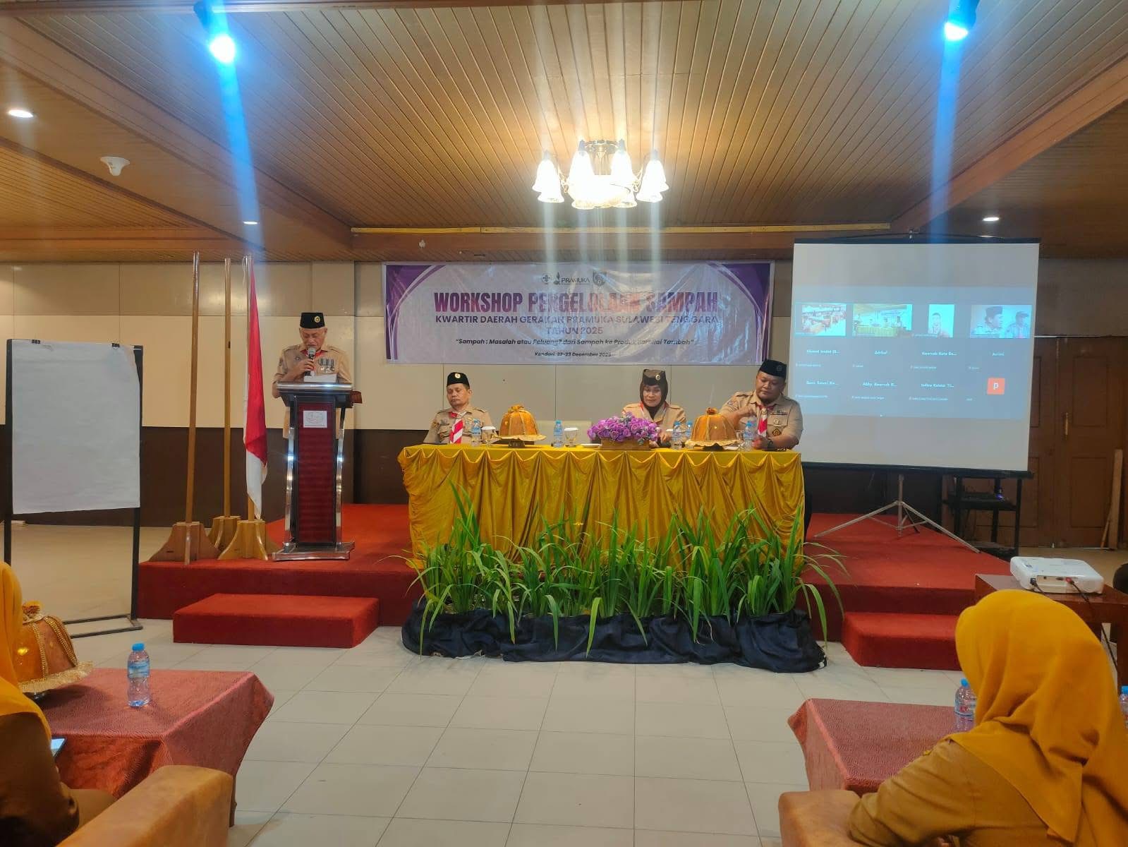 Workshop Pengelolaan Sampah Kwarda Sulawesi Tenggara tersebut secara resmi dibuka dengan harapan Gerakan Pramuka semakin menunjukkan perannya sebagai agen perubahan, pelopor kepedulian lingkungan, dan solusi nyata bagi permasalahan bangsa.